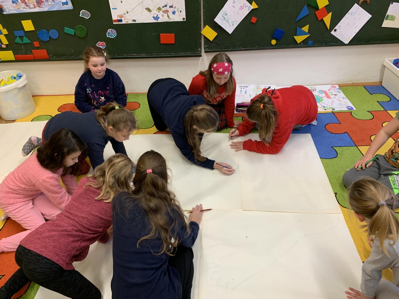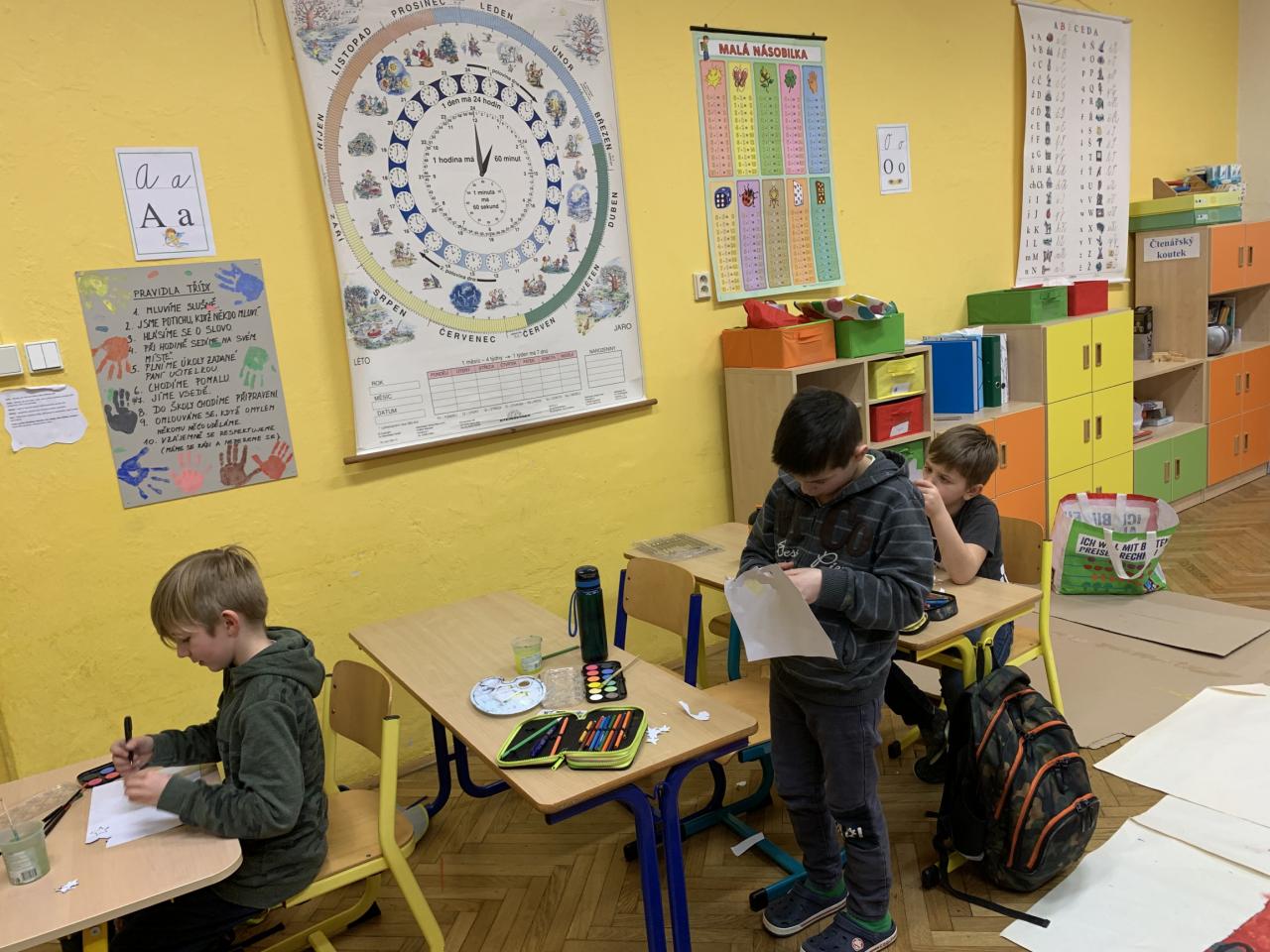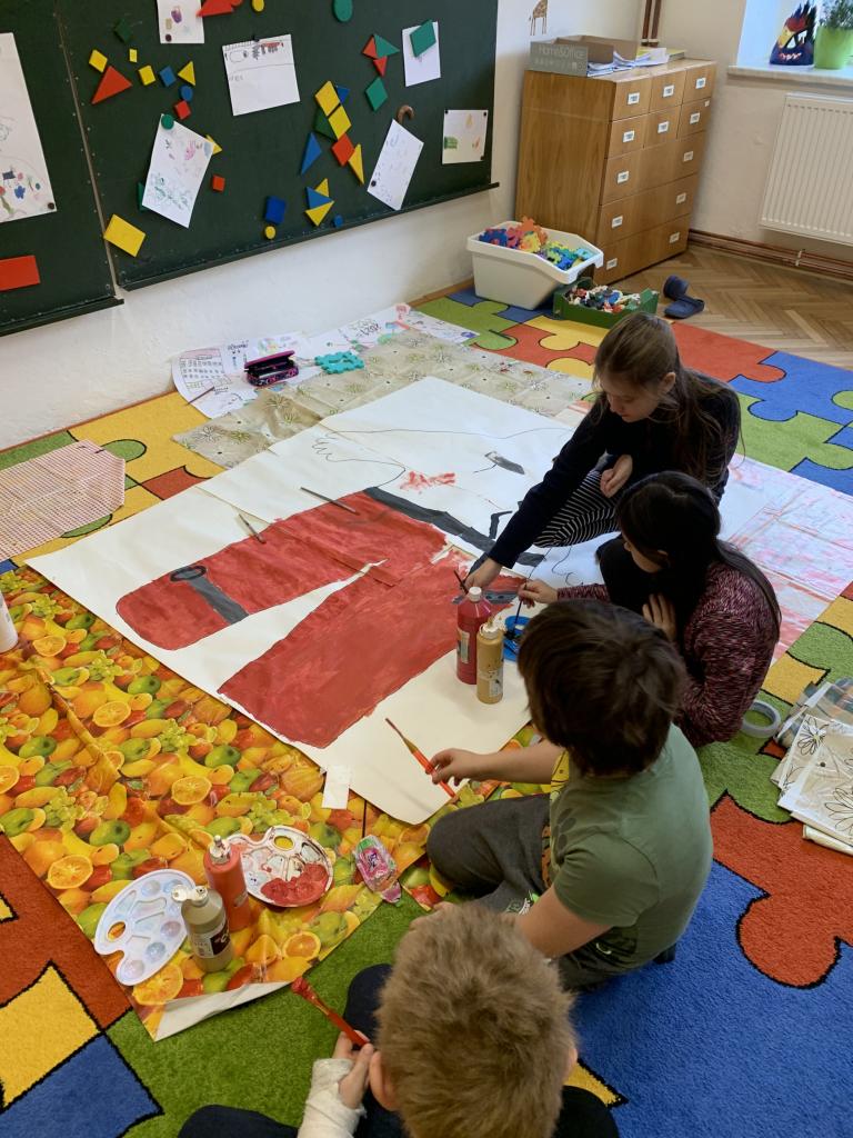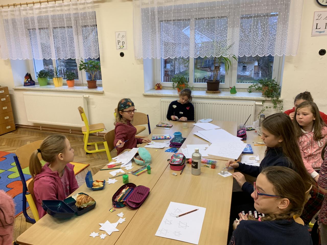 Do výroby se zapojili všichni v rámci projektového dne Praha za Rudolfa II. Po náročné práci jsme si všichni oddechli u sledování nádherné české pohádky Pekařův císař.
